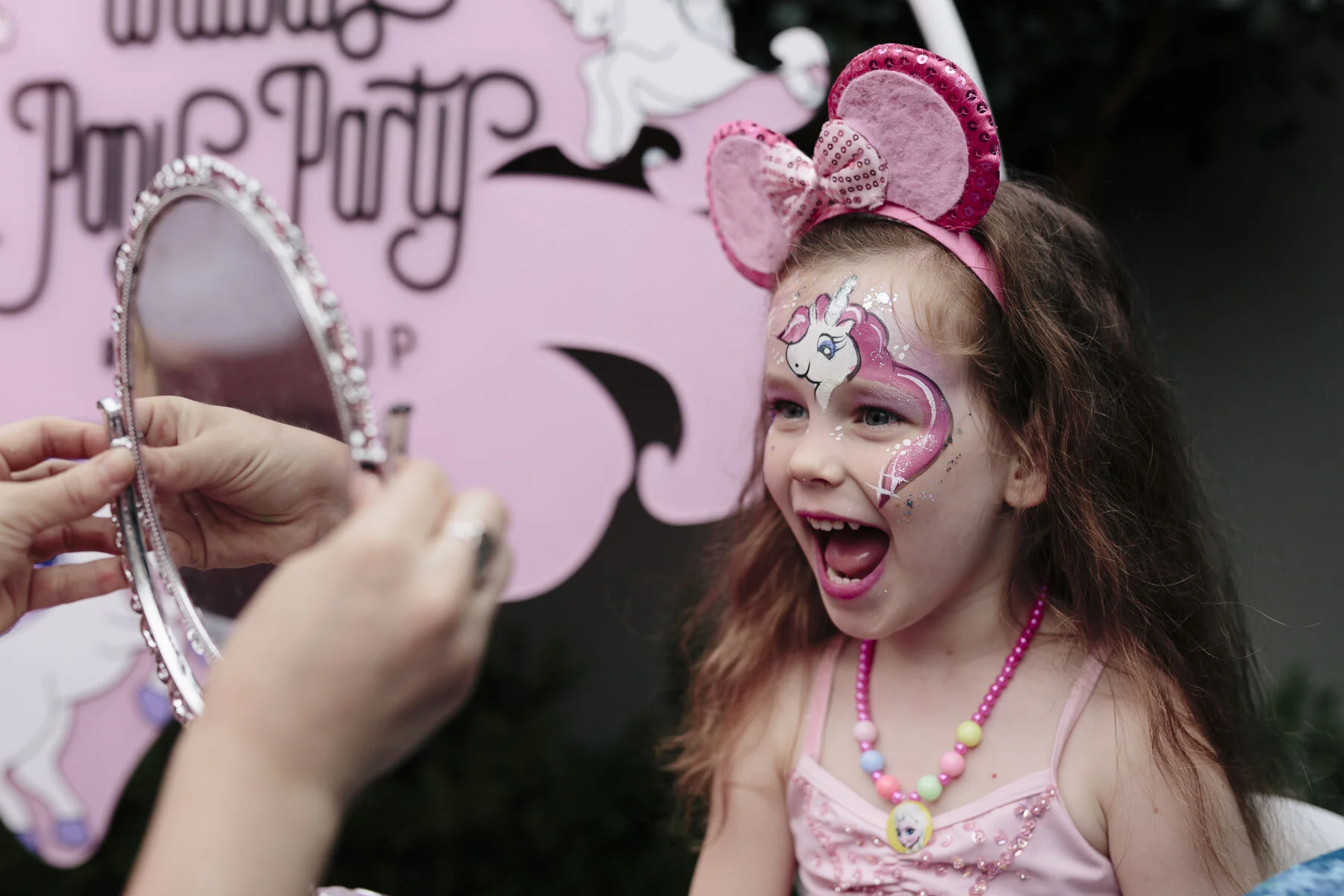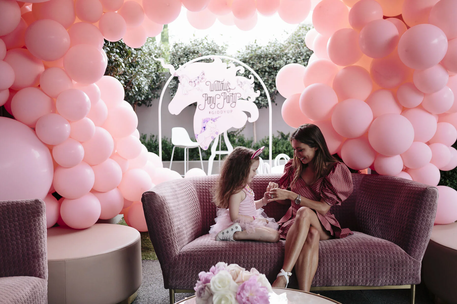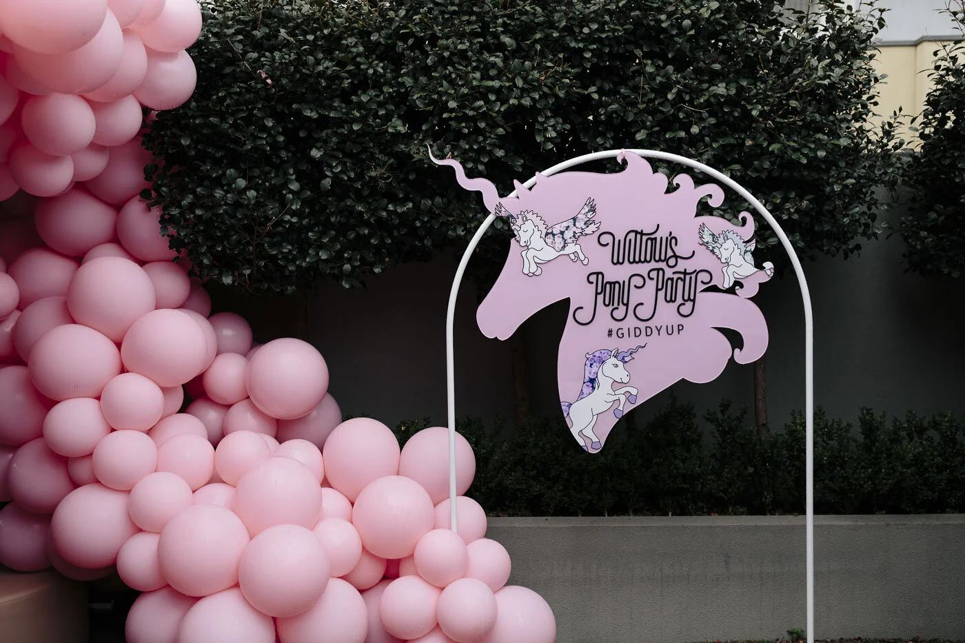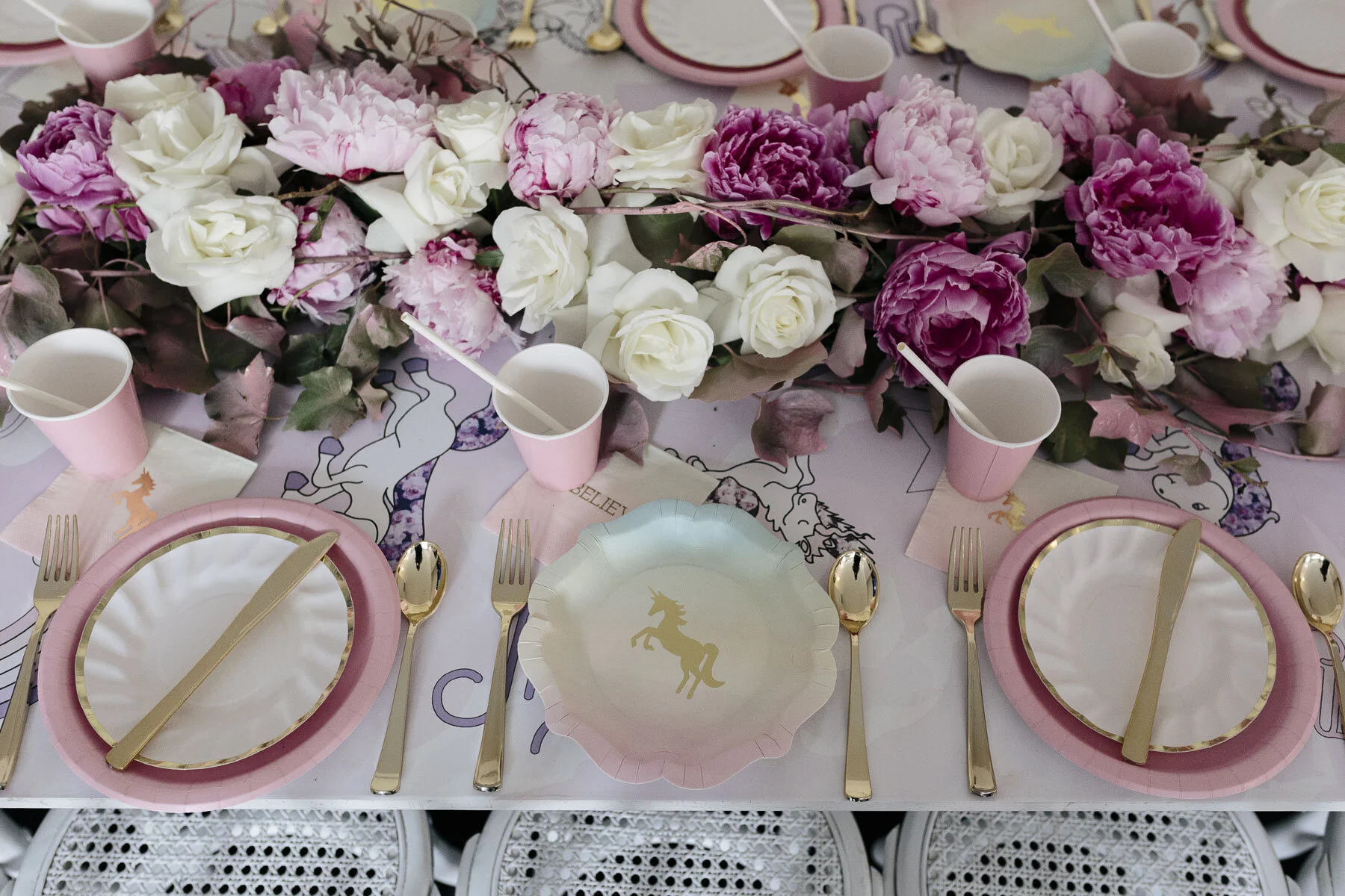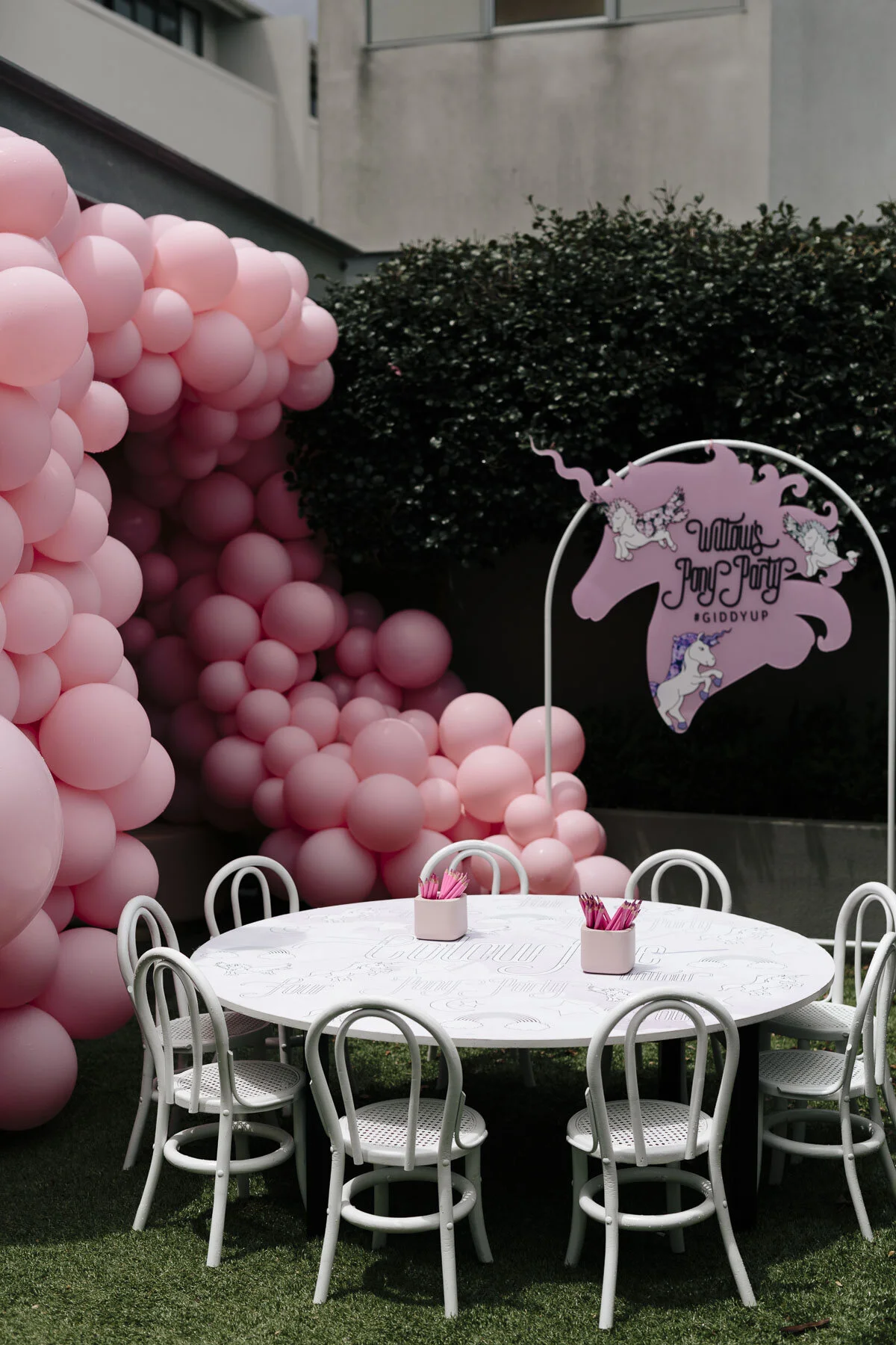 IT WAS EVERYTHING A LITTLE GIRL COULD HAVE EVER DREAMED OF! LITTLE FRIENDS WERE TREATED TO A COOKIE DECORATING ACTIVITY WITH THE PRETTIEST SUGAR GOODIES. A UNICORN DESIGNED COLOURING TABLE AND FACE PAINTING FAIRY ADDED TO THE FUN FOR THE CREATIVE ONES. WITH PAINTED AND SPARKLED FACES, THE LITTLE ONSE SNAPPED AN ENCHANTED SELFIE IN FRONT OF THE UNICORN FLORAL WALL. THE LUNCH TABLE WAS FIT FOR A FLORAL PRINCESS WITH A UNICORN DESIGNED TABLE AND PRETTY FLORALS LAYERED WITH DREMAY UNICORN TABLE WARE. THE PINK BUBBLY BALLOONS FRAMED THE UNICORN ARCH AND SPILLED INTO THE PARENTS RETREAT, A BLUSH LOUNGE AREA FEATURING MARBLE TABLES AND ROSE PINK VELVET LOUNGES. IT WAS AN AFTERNOON OF MYSTICAL UNICORNS AND THE MOST DELIGHTED LITTLE PEOPLE.